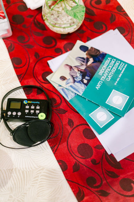 巴厘岛口译公司为 2022 年 7 月在巴厘岛沙努尔举行的首届印度尼西亚反人口贩运聚会提供了必要的 SIS 设备和专家英语印尼语口译服务。他们拥有来自印度尼西亚各地的 100 多名反人口贩运专业人员,他们的无缝通信解决方案确保了有效的协作和交流想法,为该活动成功打击人口贩运做出贡献。